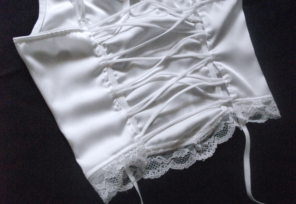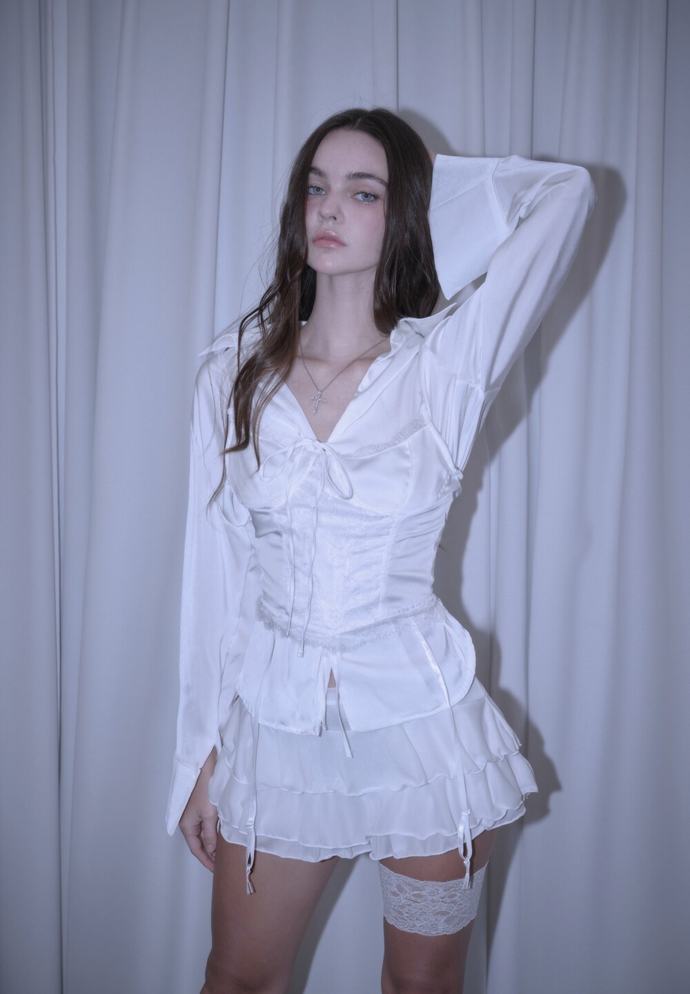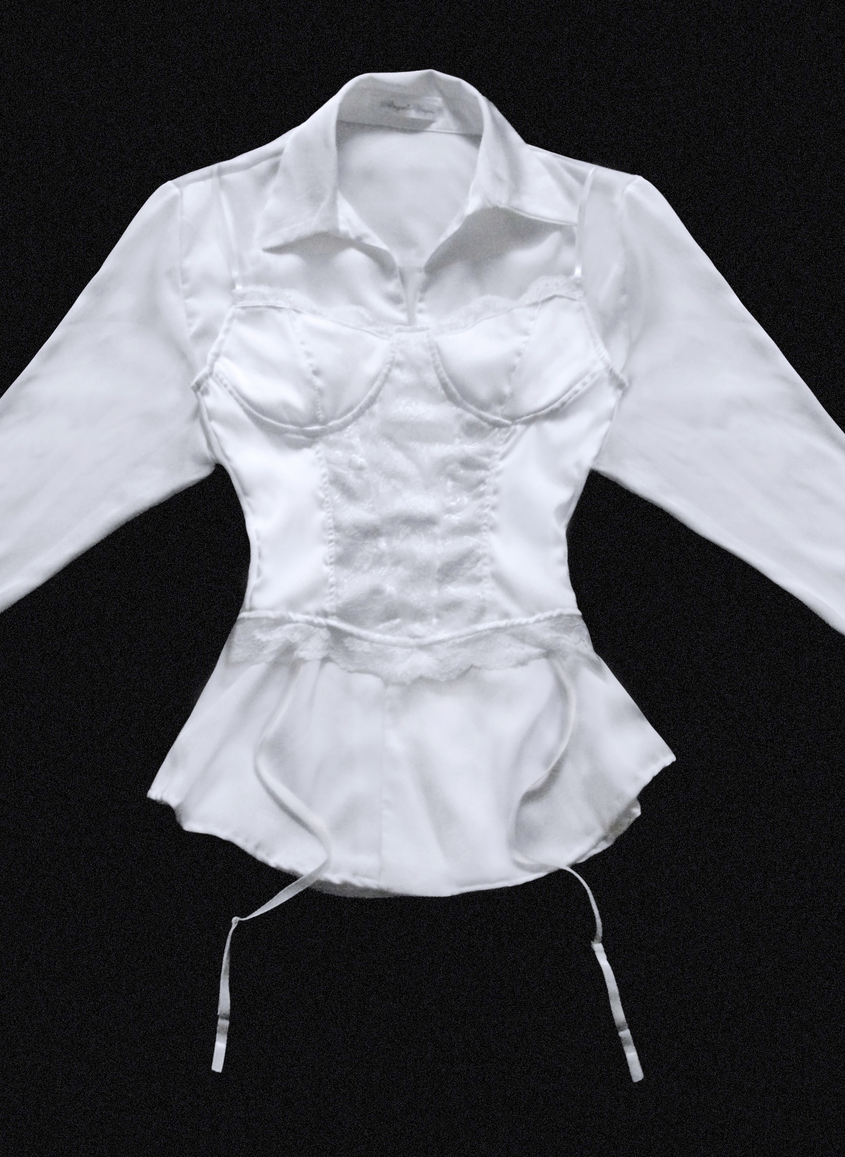 * 은은한 새틴 원단의 블라우스와 레이스 뷔스티에의 세트 제품입니다.